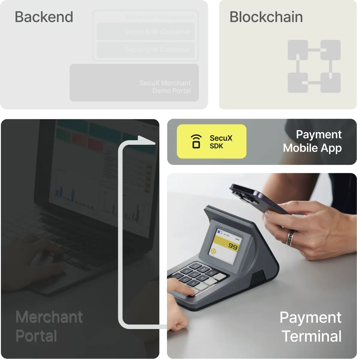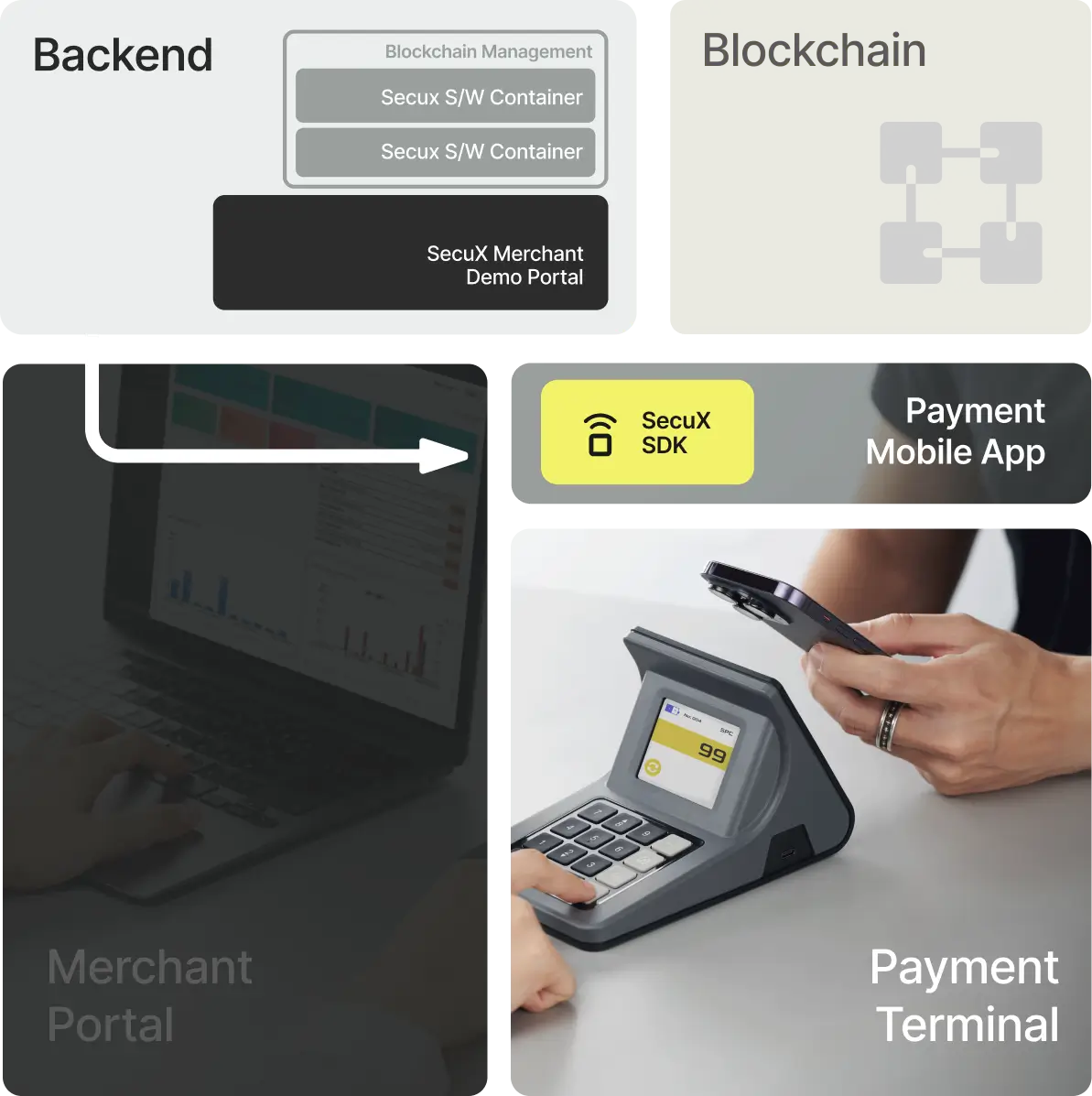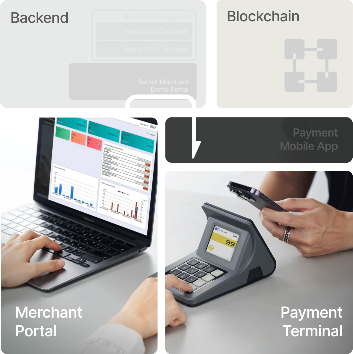 Low-cost offline hardware devices on the merchant’s side. These devices have different form factors to fit different scenarios. They can operate without an internet connection, connect to any legacy POS system, or be installed in existing self-service machines or vending machines.