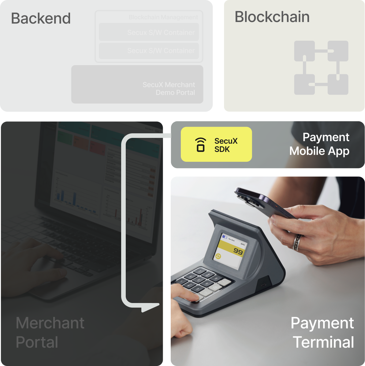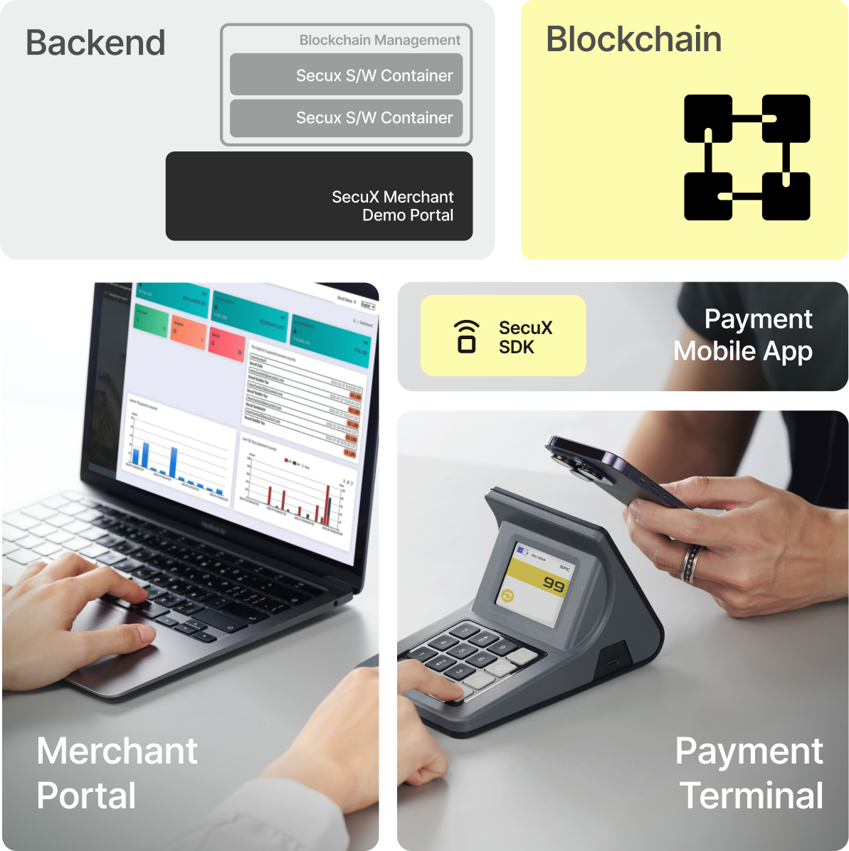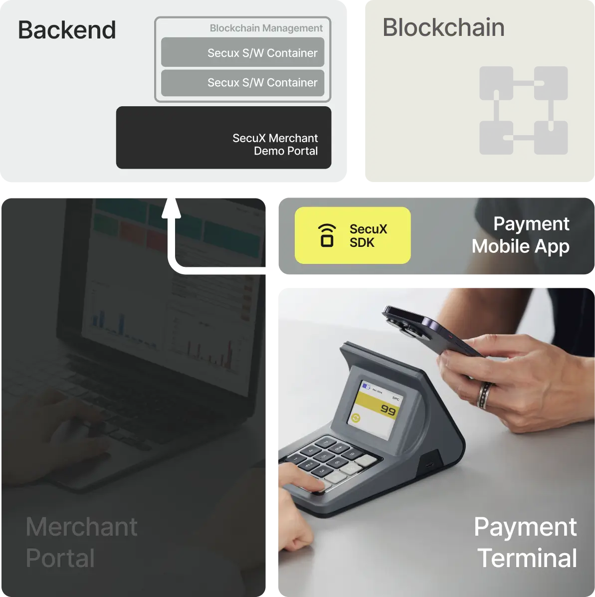 Low-cost offline hardware devices on the merchant’s side. These devices have different form factors to fit different scenarios. They can operate without an internet connection, connect to any legacy POS system, or be installed in existing self-service machines or vending machines.